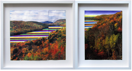 Gyun Hur. Untitled (Diptych). 2010, acrylic on found paper, 20 x 11 inches.